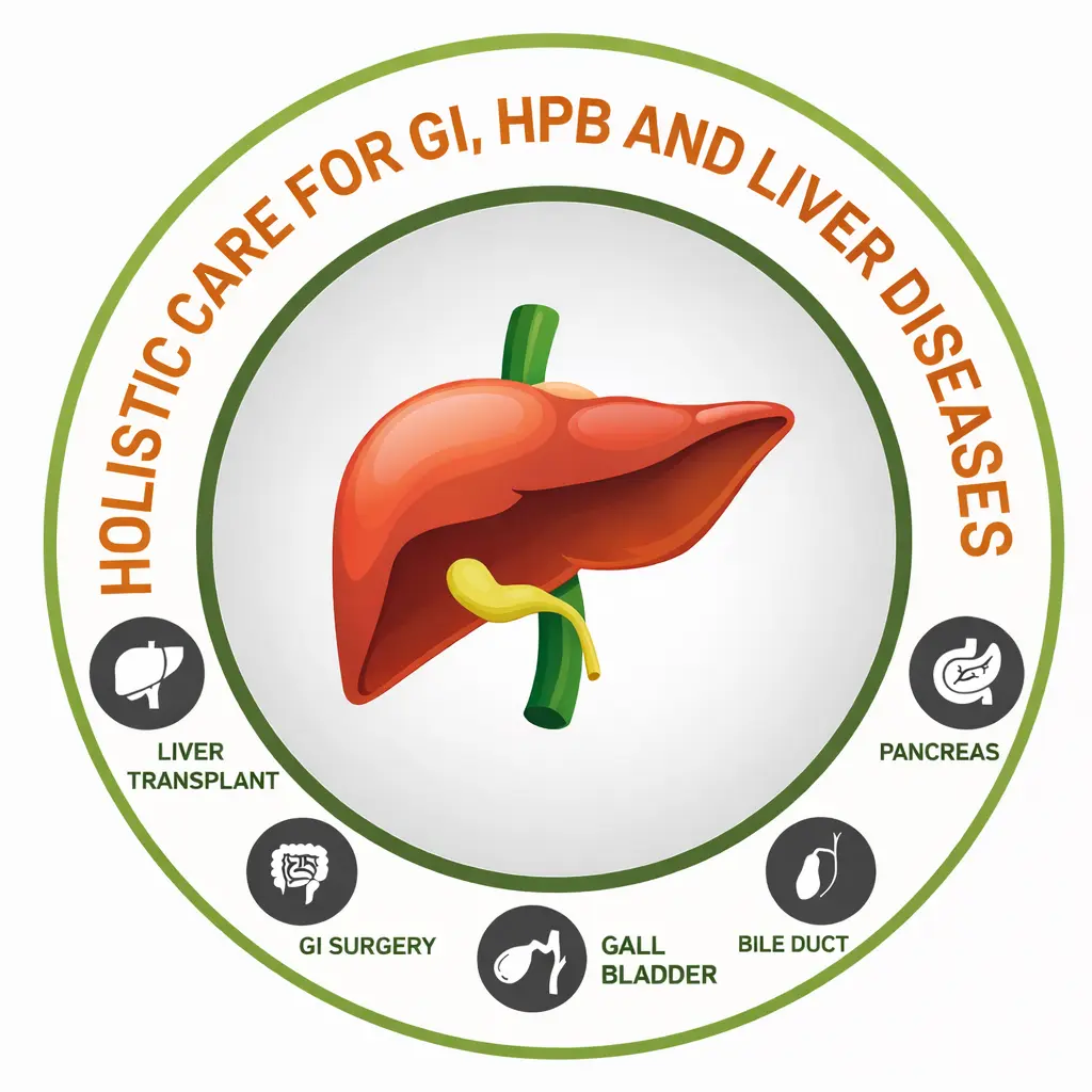 Advanced robotic surgery for Liver Cancer, Pancreatic tumors, Gallbladder stones, and Hernias.